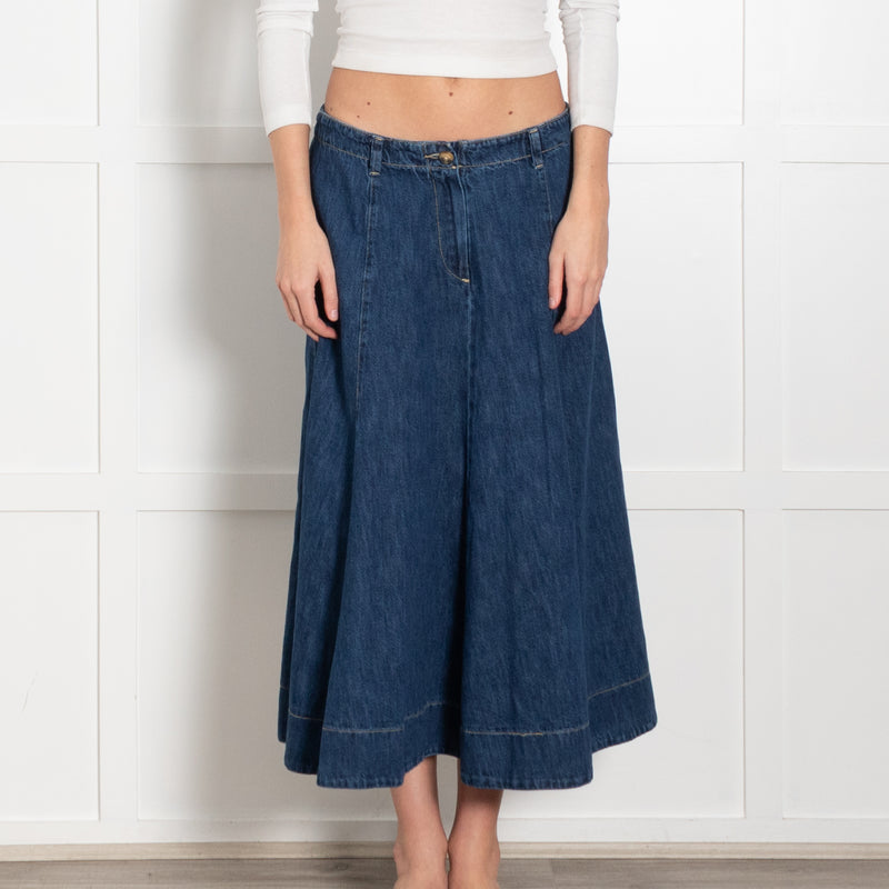 Project AJ 117 Blue Denim A-Line Midi Skirt