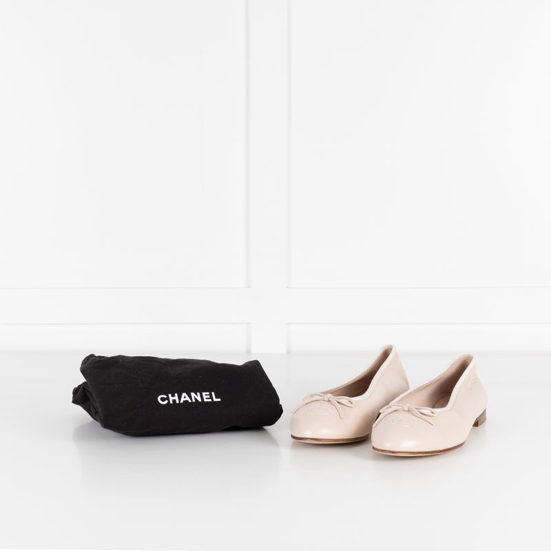 Chanel Beige Lamb Skin Leather CC Bow Ballet Shoes