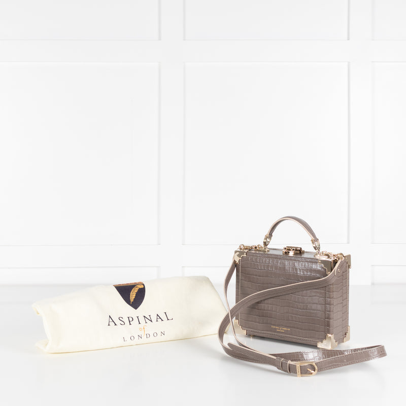 Aspinal of London Taupe Trunk Croc-Embossed Leather Bag With Removable Strap