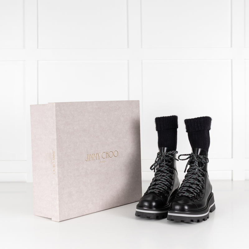 Jimmy Choo Chike Flat Black Leather & Ribbed Knit Boots