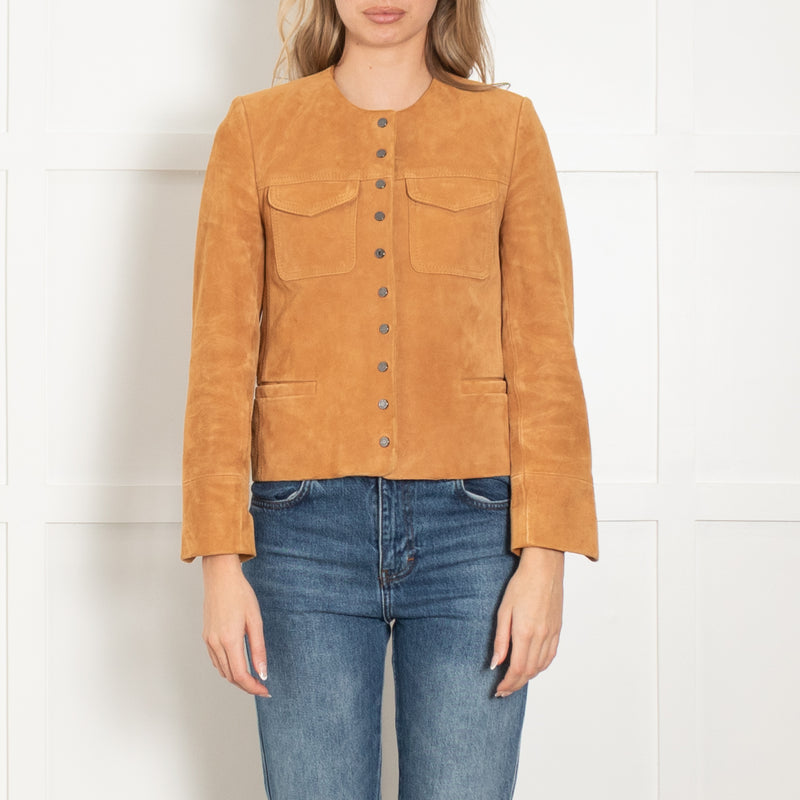 Zadig And Voltaire Tan Suede Jacket With Stud Fastening