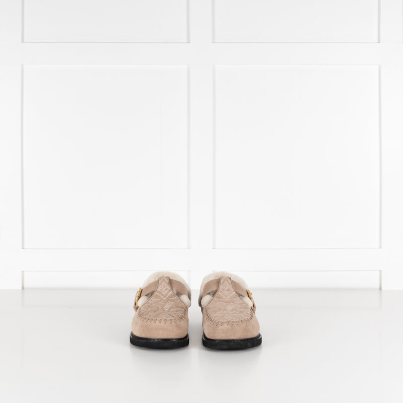Louis Vuitton Beige Suede Shearling Comfort Mary Janes