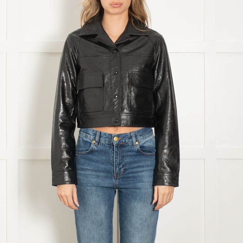 Citizens of Humanity Black Front Pockets Cropped Leather Jacket