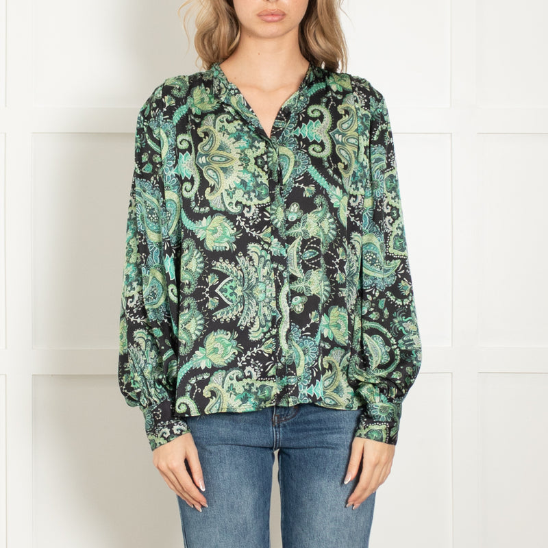 Ba&sh Navy & Beige High Neck Patterned Blouse