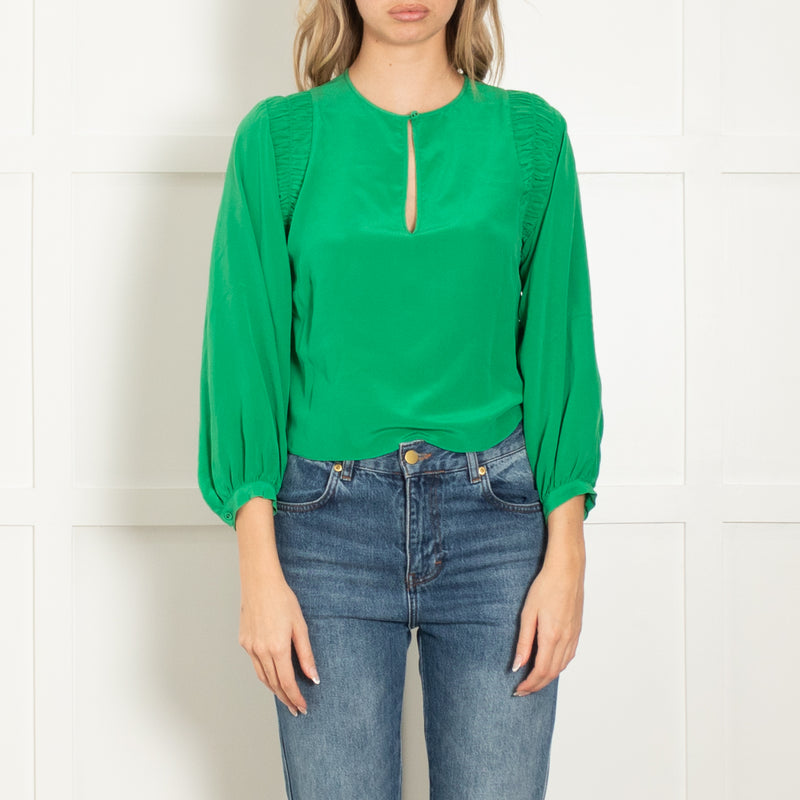 Joie Peach Silk Long Sleeve Frill Trim Blouse