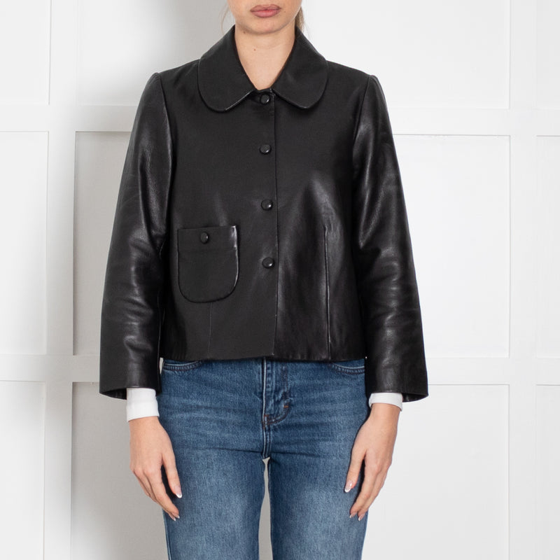 Ba&sh Black Milos Leather Jacket with Peter Pan Collar