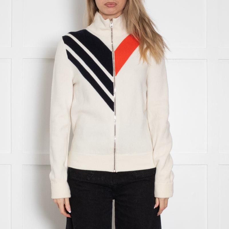 Stella McCartney Cream High Neck Zip Jacket With Blue And Orange Stripe