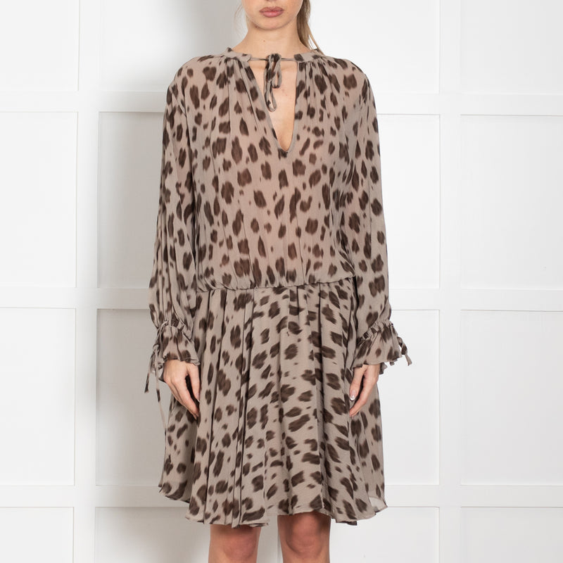 Anine Bing Ellinan Leopard Print Silk Chiffon Dress