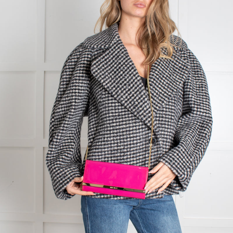 Jimmy Choo Bright Pink Milla Patent Leather Gold Chain Clutch Bag
