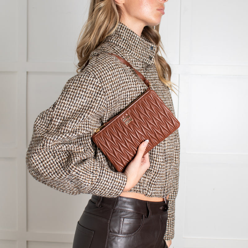 Miu Miu Tan Matelasse Nappa Leather Pouch Bag