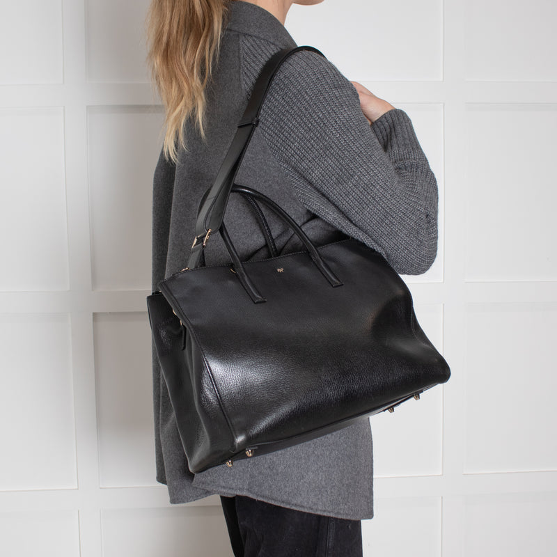 Anya Hindmarch Black Leather Ebury Tote Bag