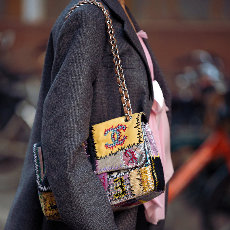 Chanel Grey Vertical Quilt Mademoiselle Lock Bag