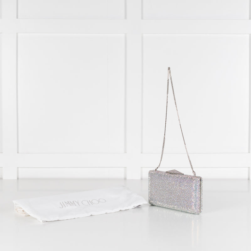 Jimmy Choo Silver Iridescent Crystal Clemmie Clutch Bag