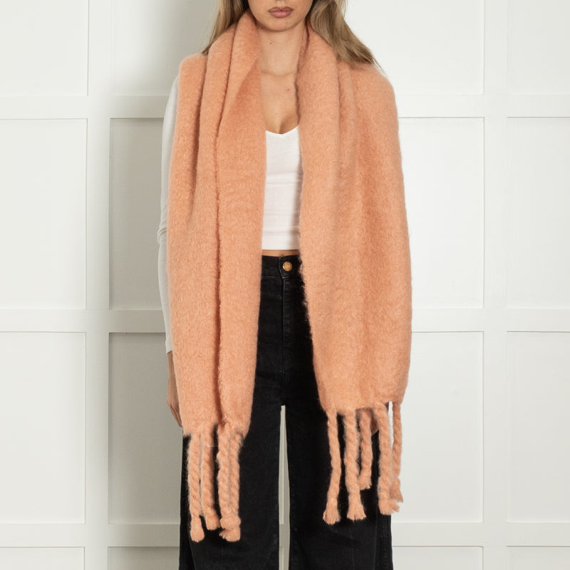 Jil Sander Peach Mohair And Wool Scarf With Giant Fringe