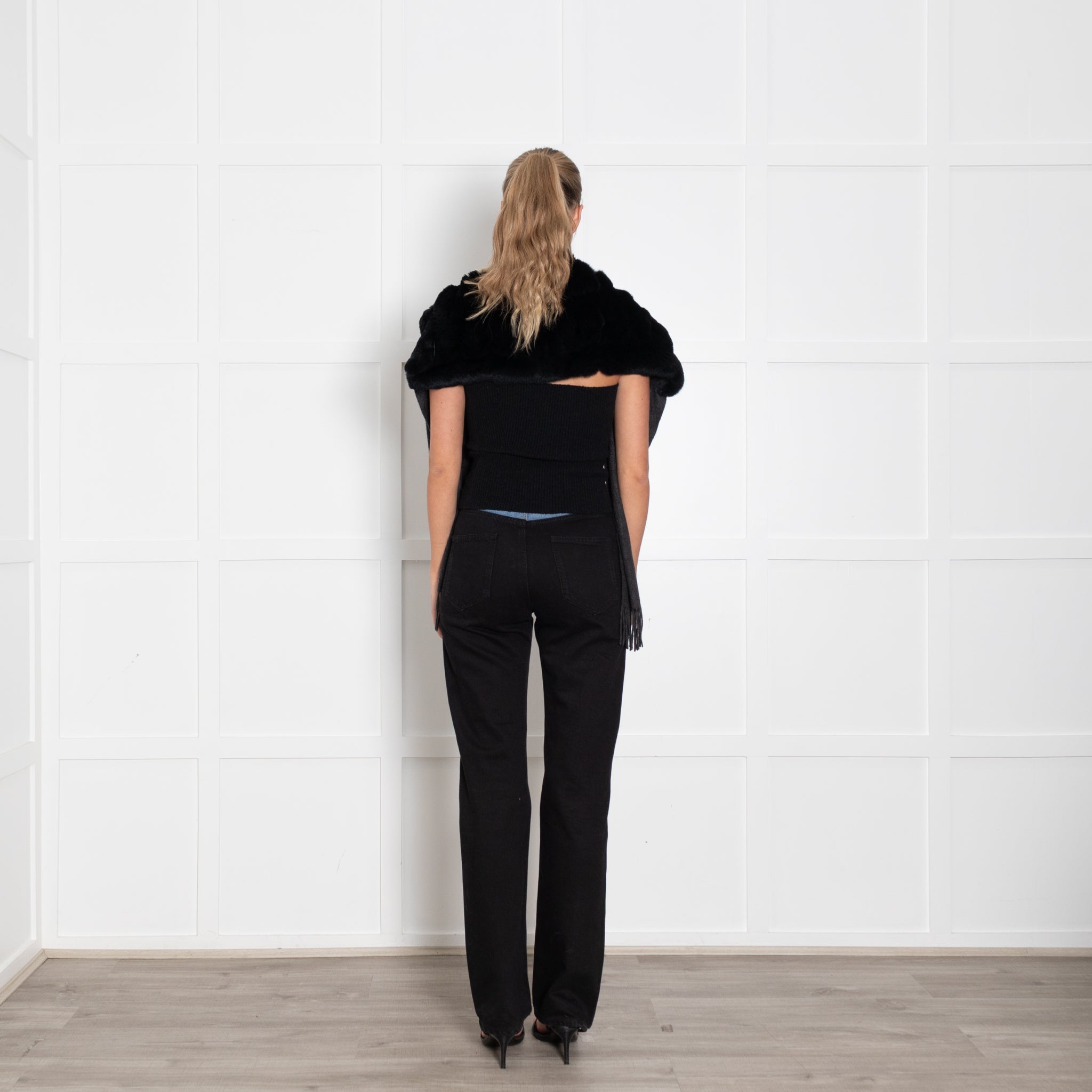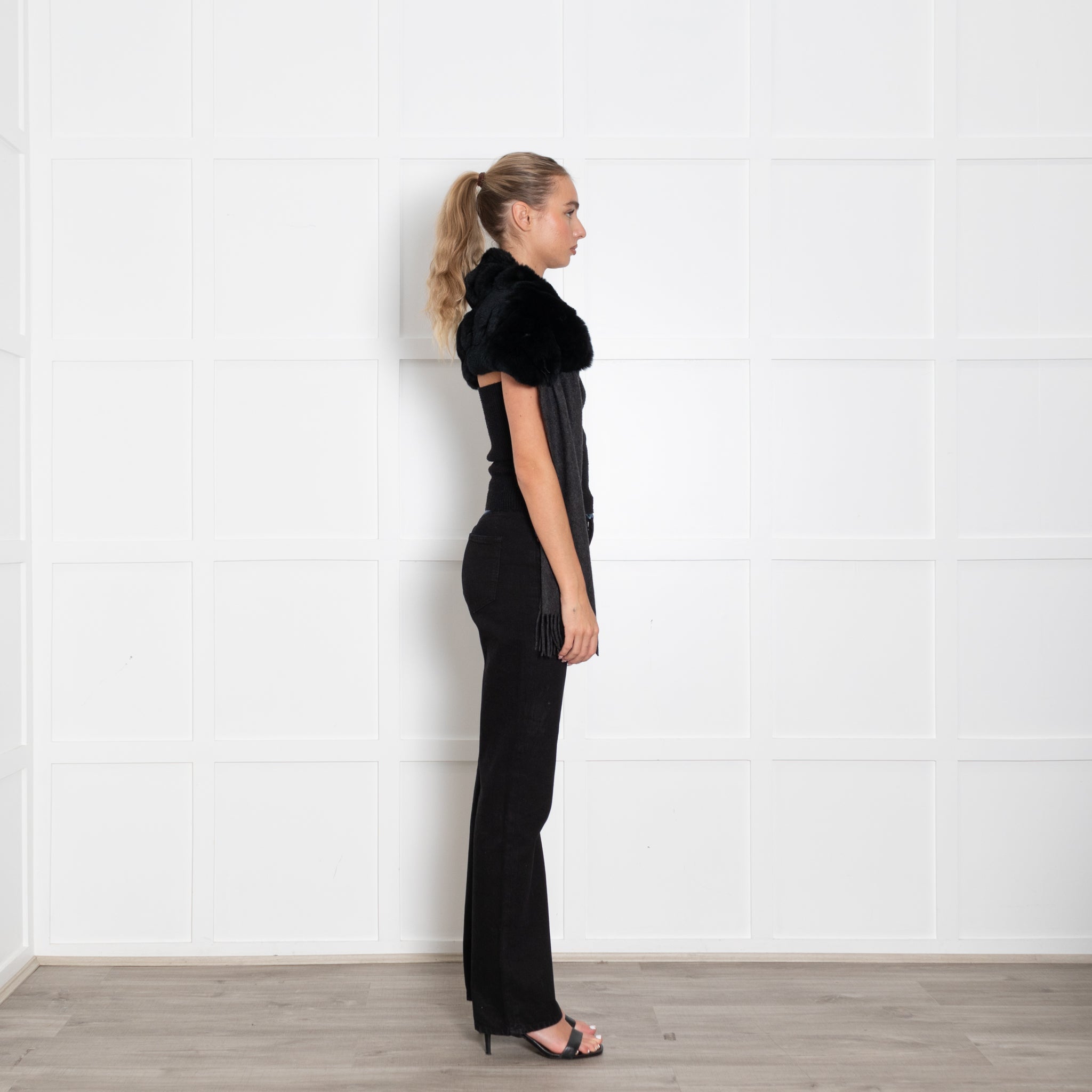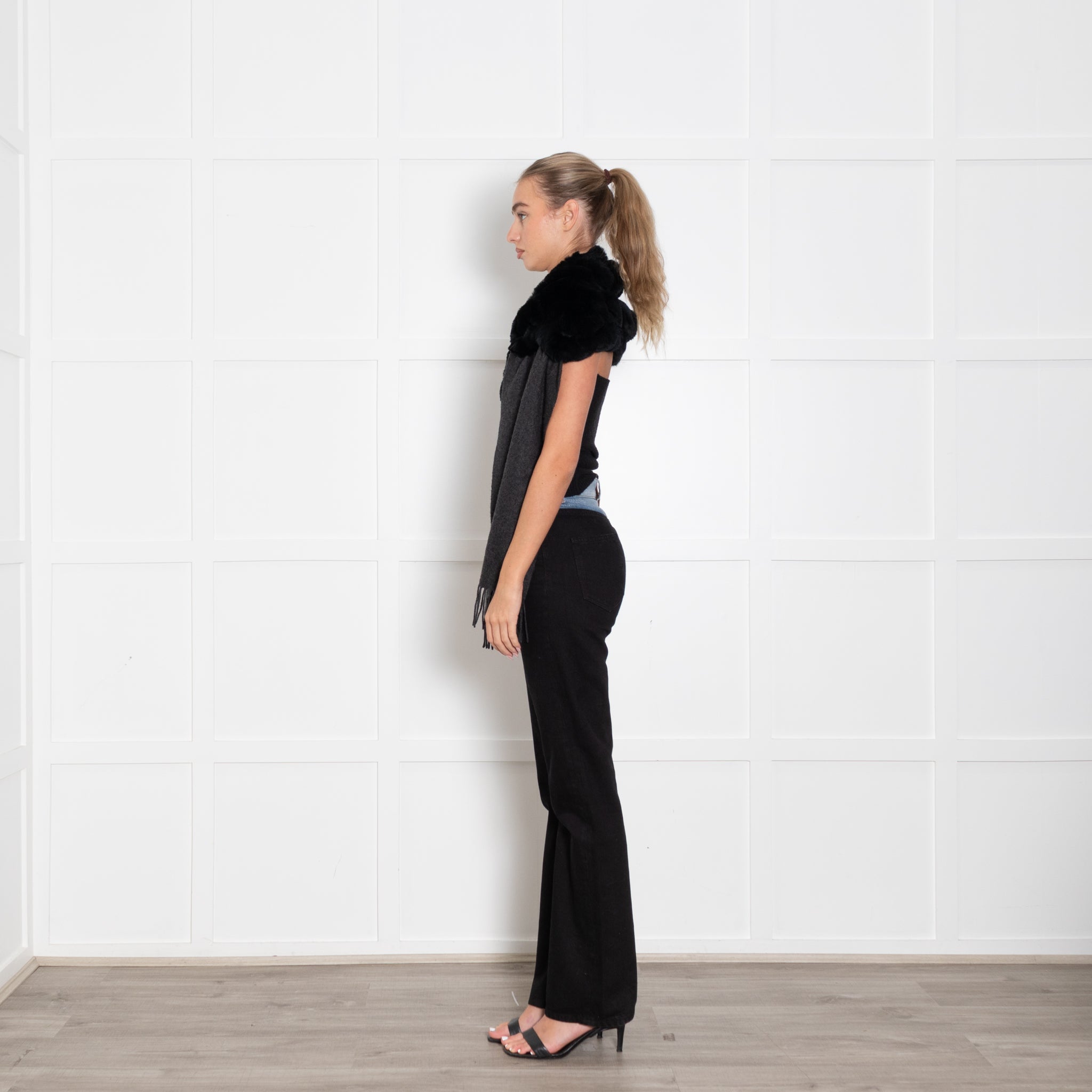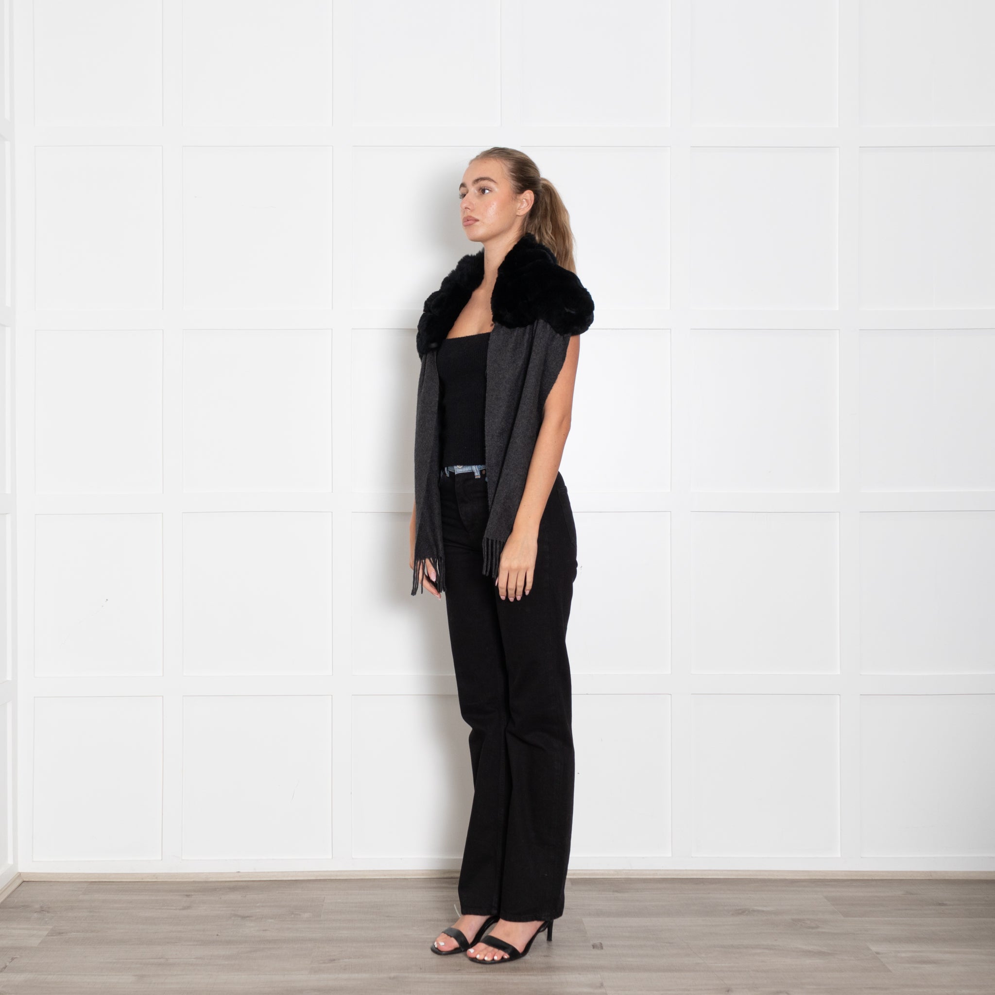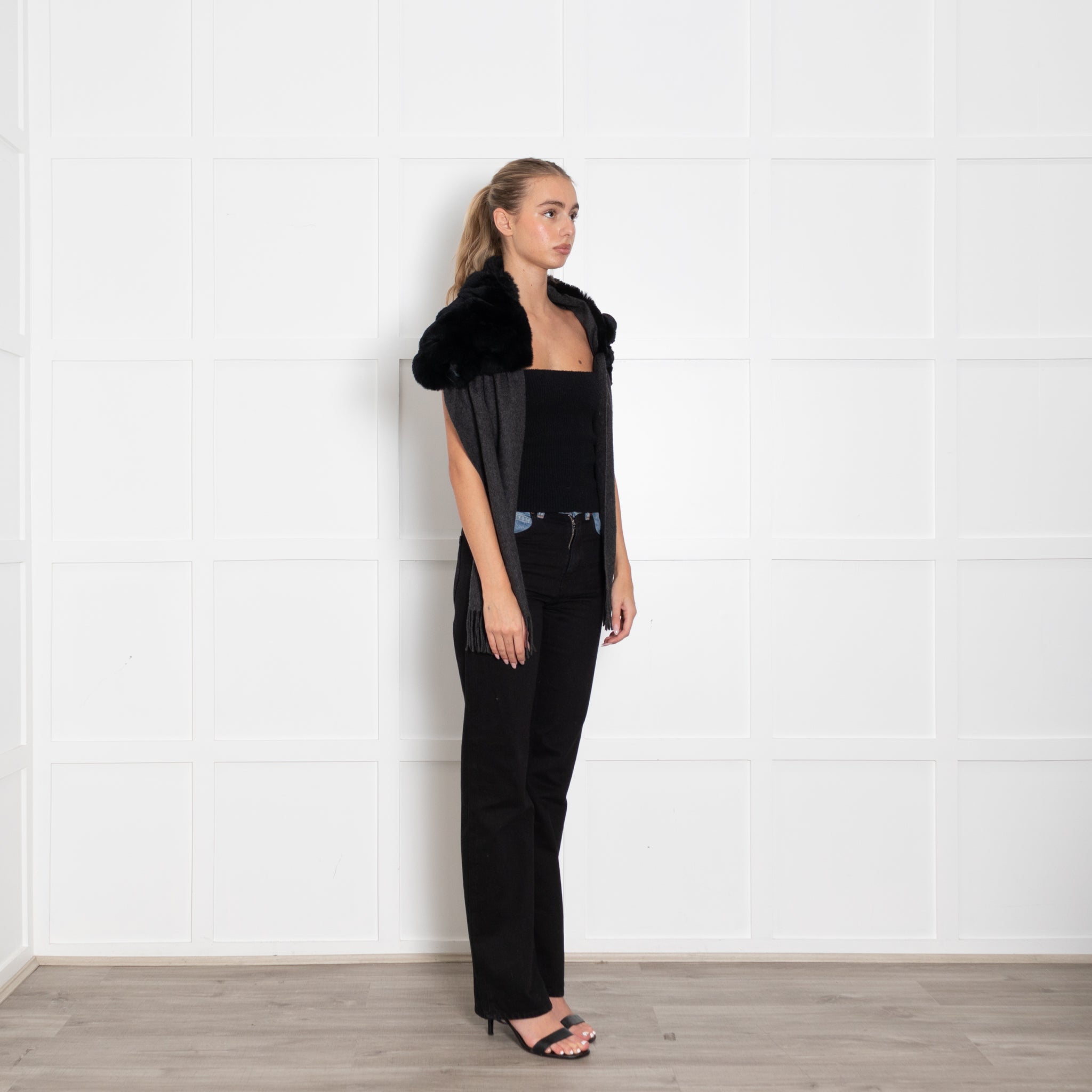 N. Peal Dark Grey Cashmere With Rabbit Fur Neck Scarf