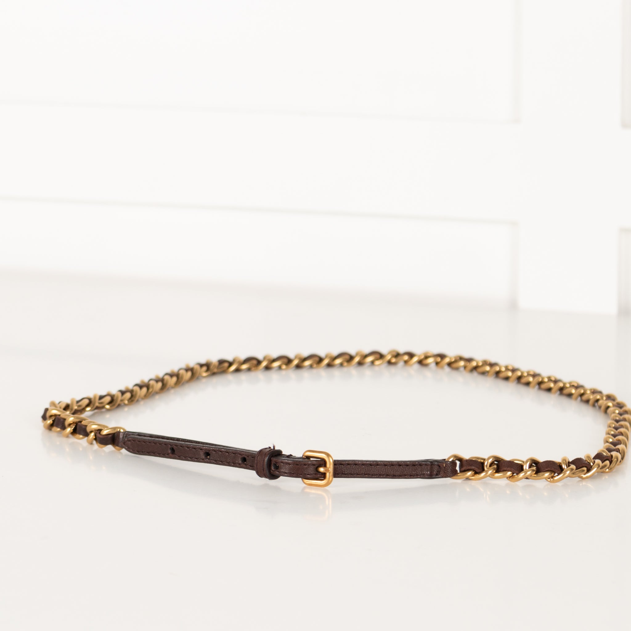Salvatore Ferragamo Brown Leather Gold Chain Thin Belt