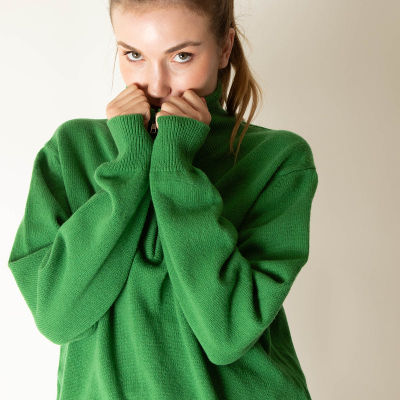 &DAUGHTER Quarter Zip Roll Neck Jumper In Green
