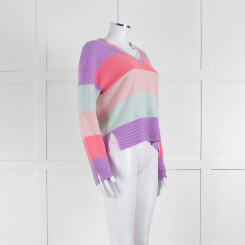 & Isla Purple Pink Blue Stripe V Neck Cashmere Jumper