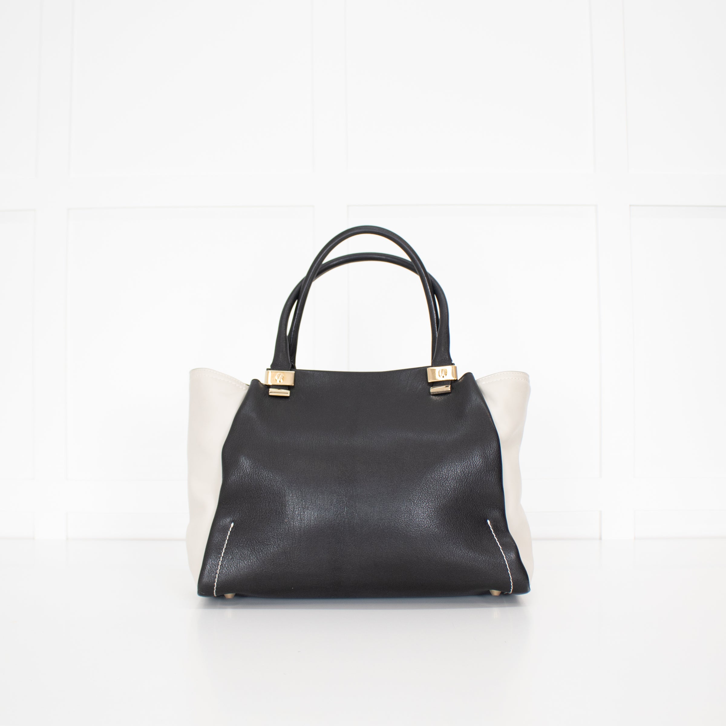 Lanvin Black Cream Trilogy Leather Tote Bag