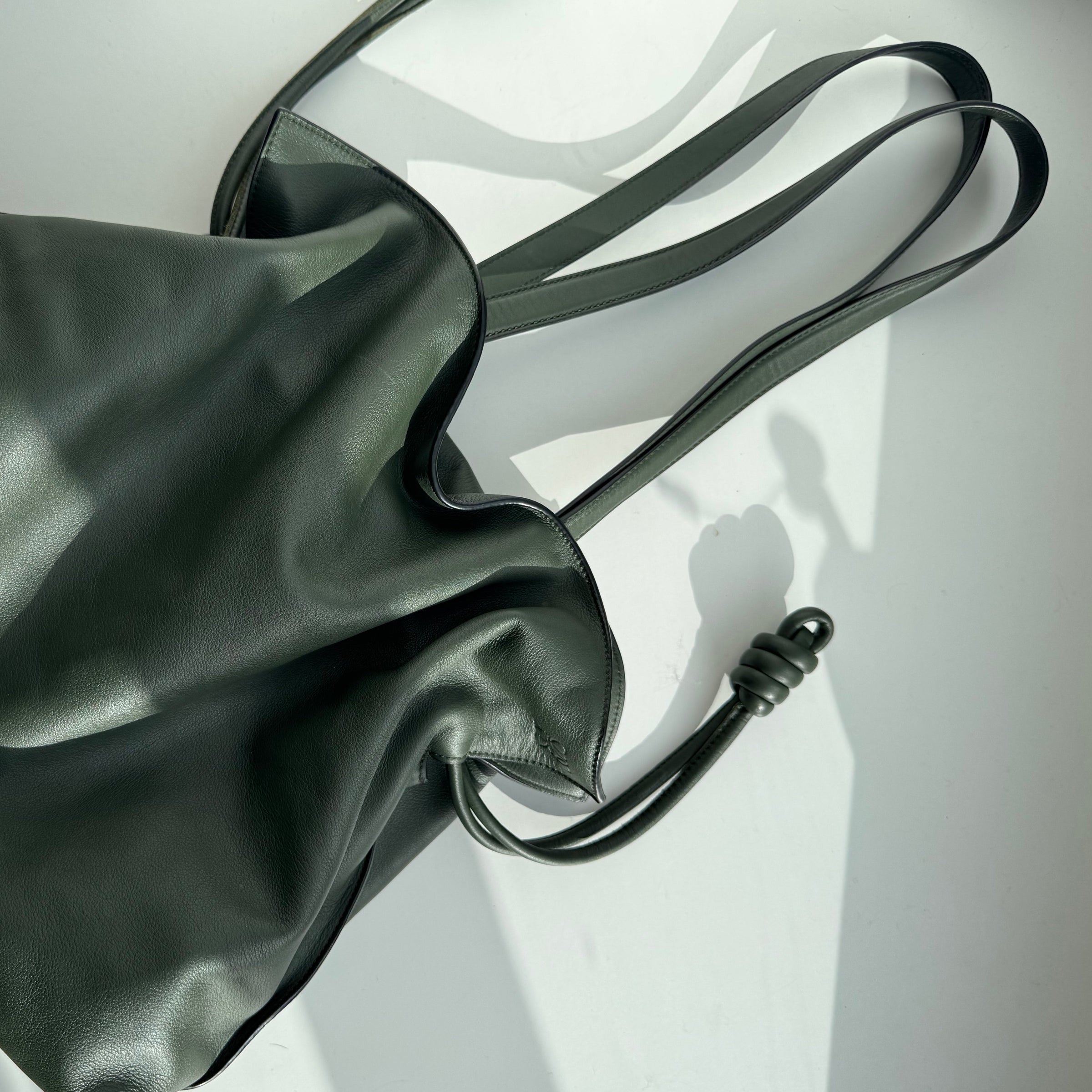 Loewe Green Flamenco Knot Large Leather Clutch Bag