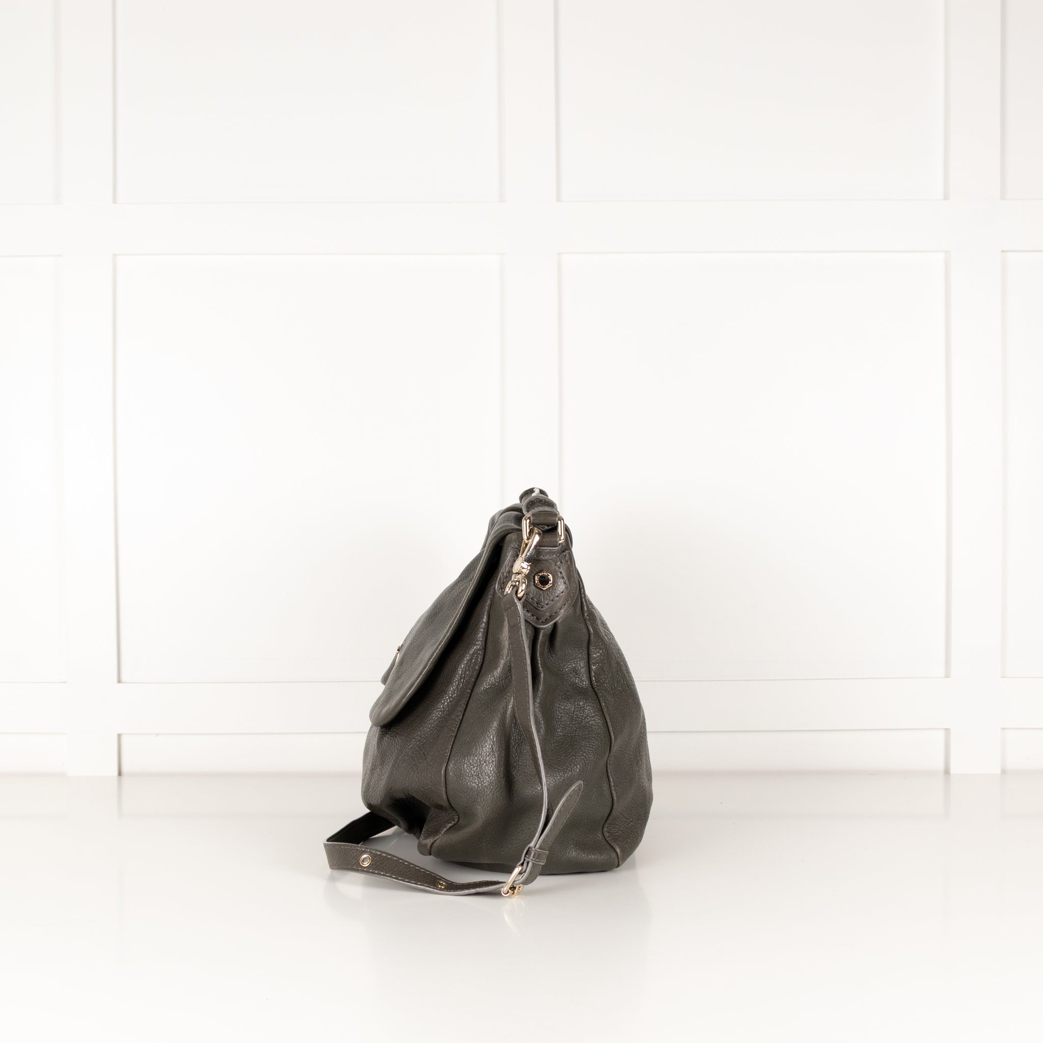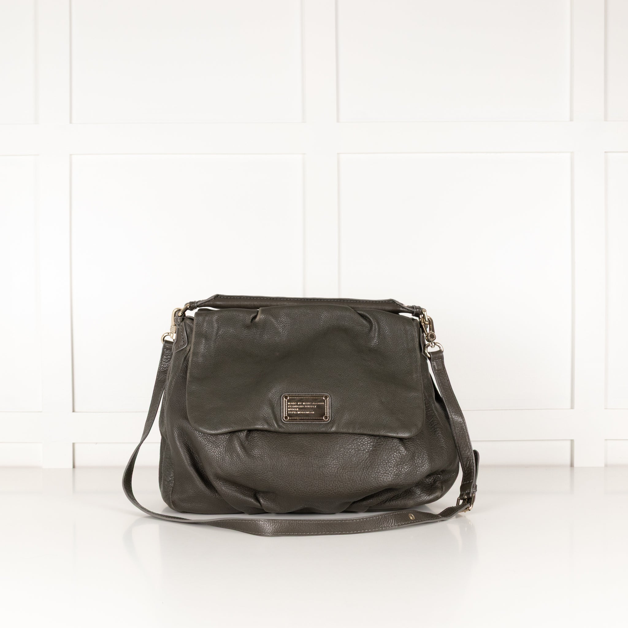 Marc Jacobs Khaki Grey Pebble Leather Flap Shoulder Bag