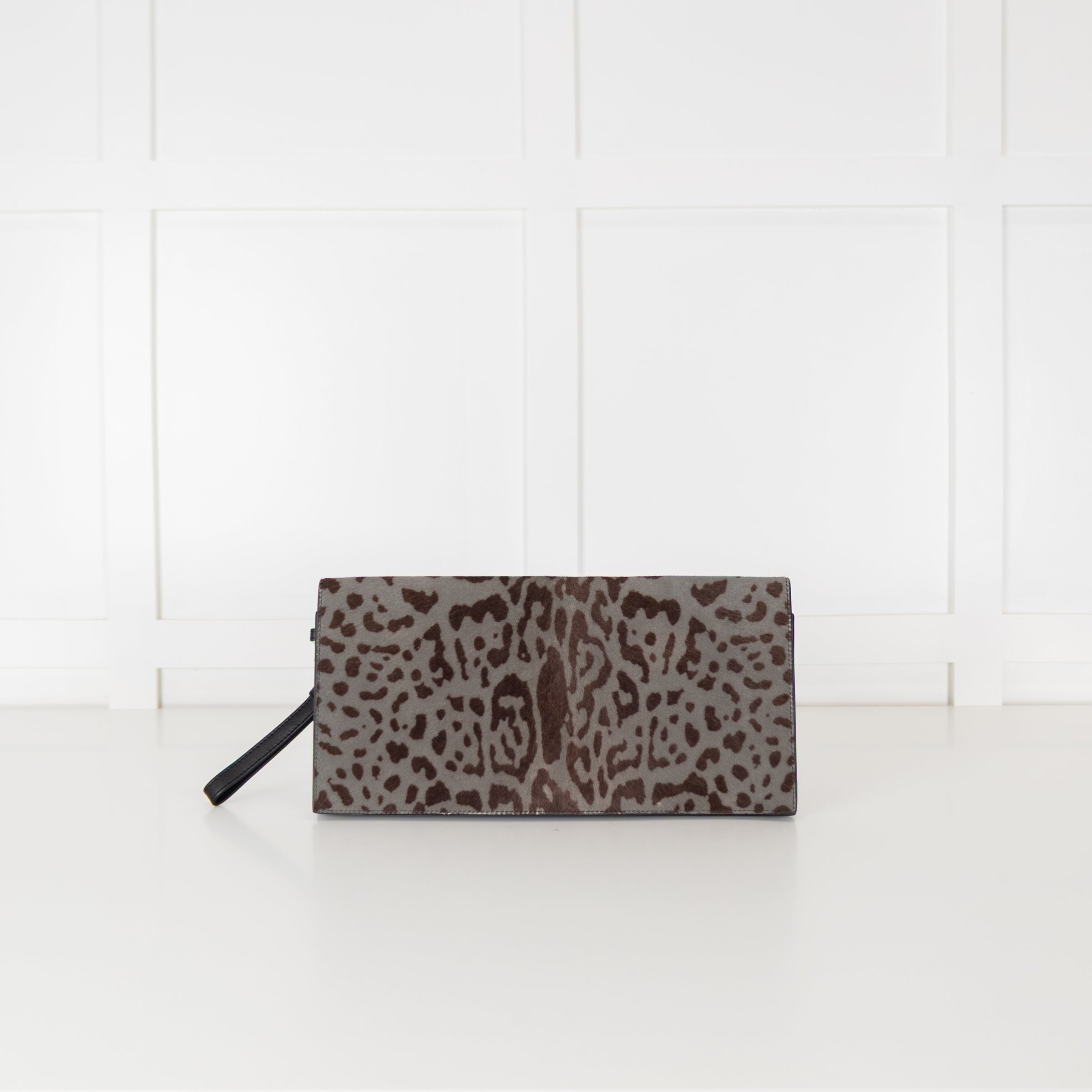 Max Mara Black Grey Animal Ponyskin Large Clutch