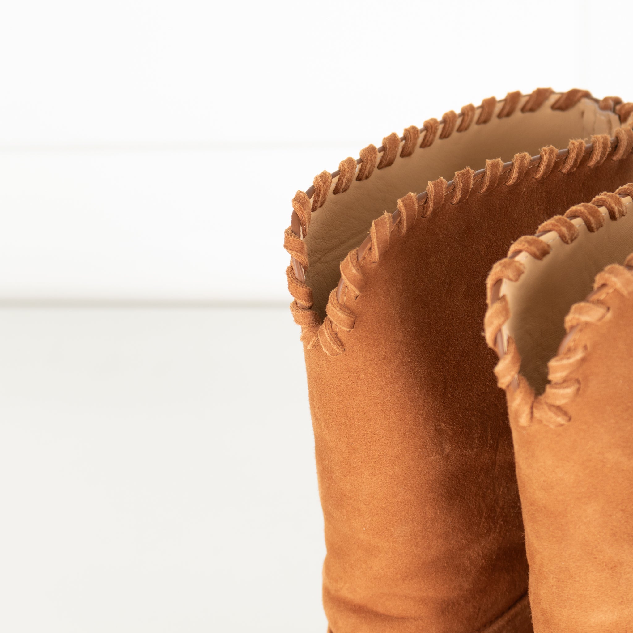 Dear Frances Camel Suede Whip Stitch Ankle Boots