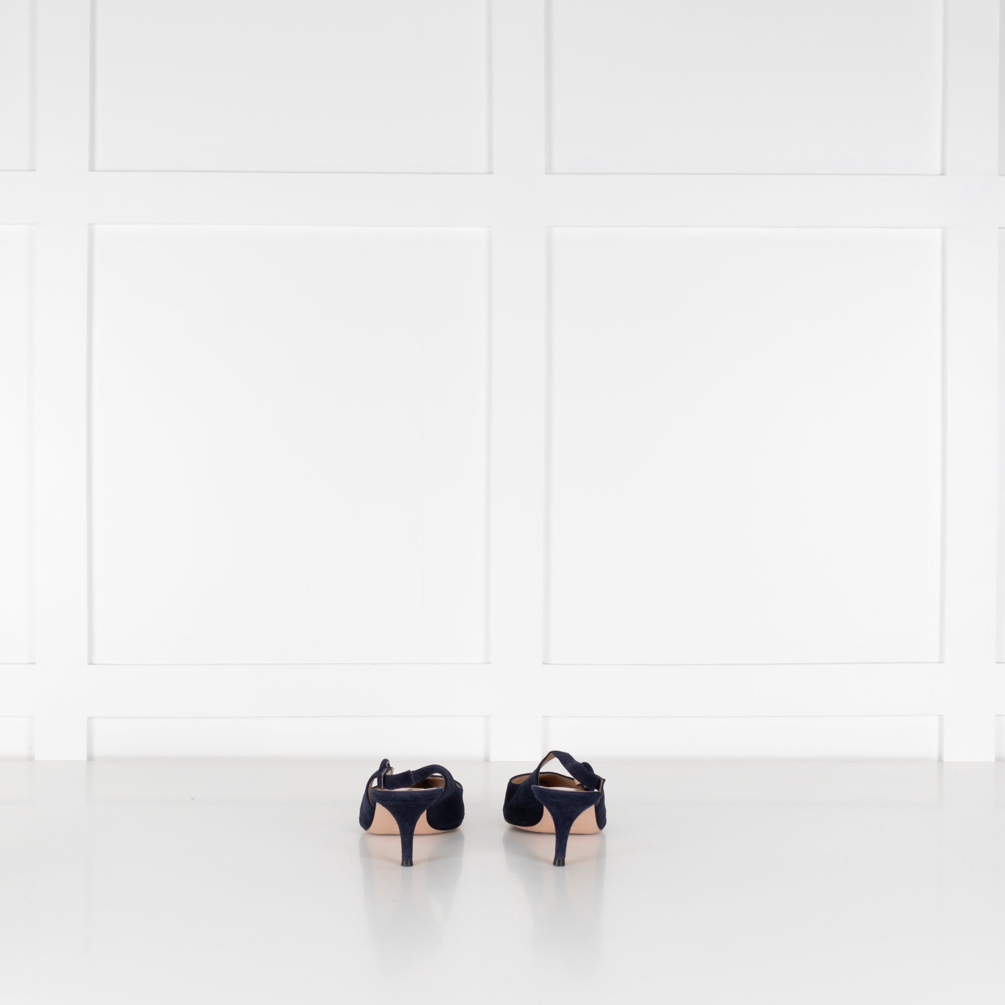 Gianvito Rossi Navy Blue Suede Slingbacks