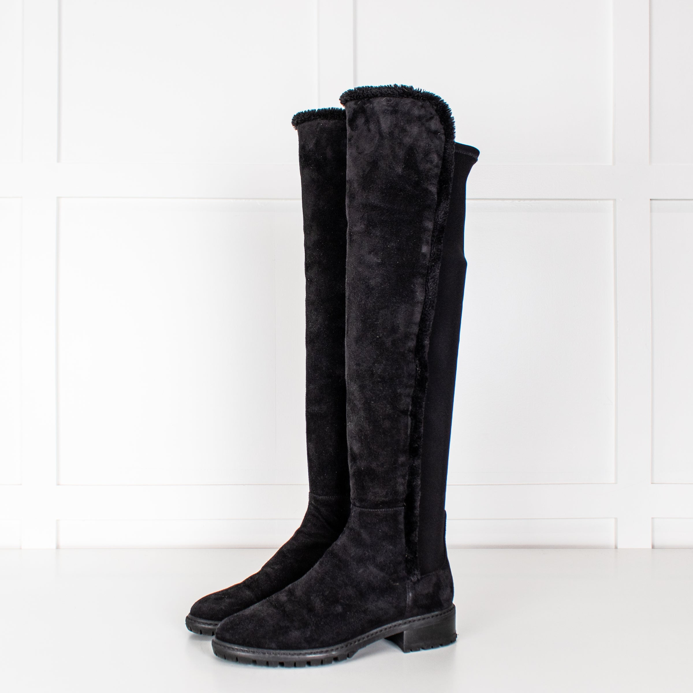 Stuart Weitzman Black Suede & Fabric Over The Knee Boots