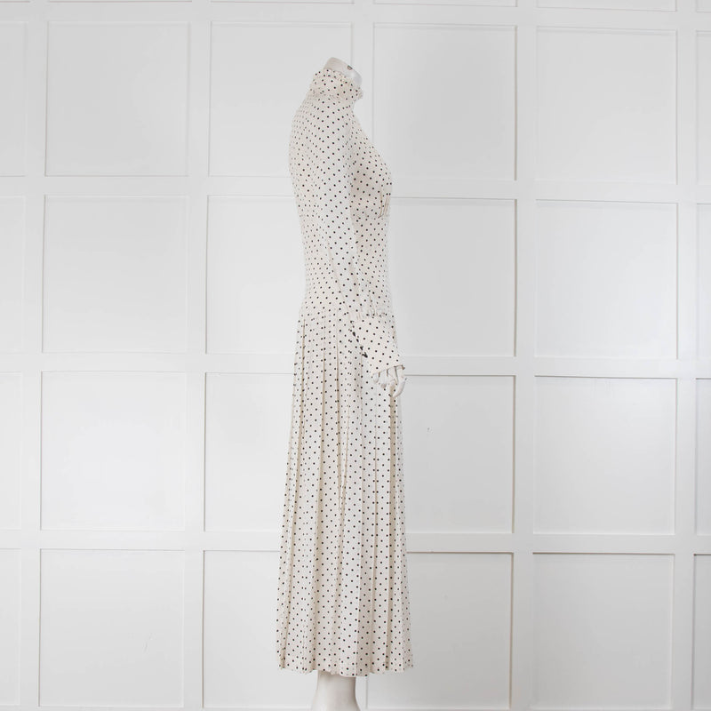 Alessandra Rich White Black Polka Dot Print Pleated Long Dress