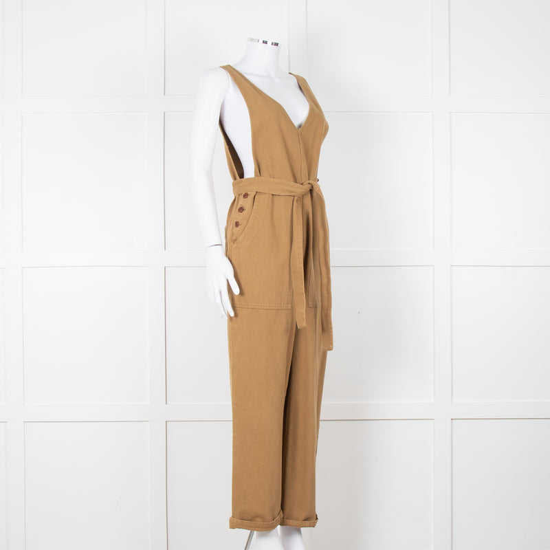 Alex Mill Khaki Deep V Neck Belted Jumpsuit