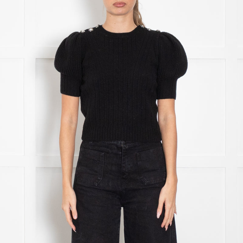 Alexander McQueen Black & Grey Short Sleeve Jumper With Crystal Embellished Buttons