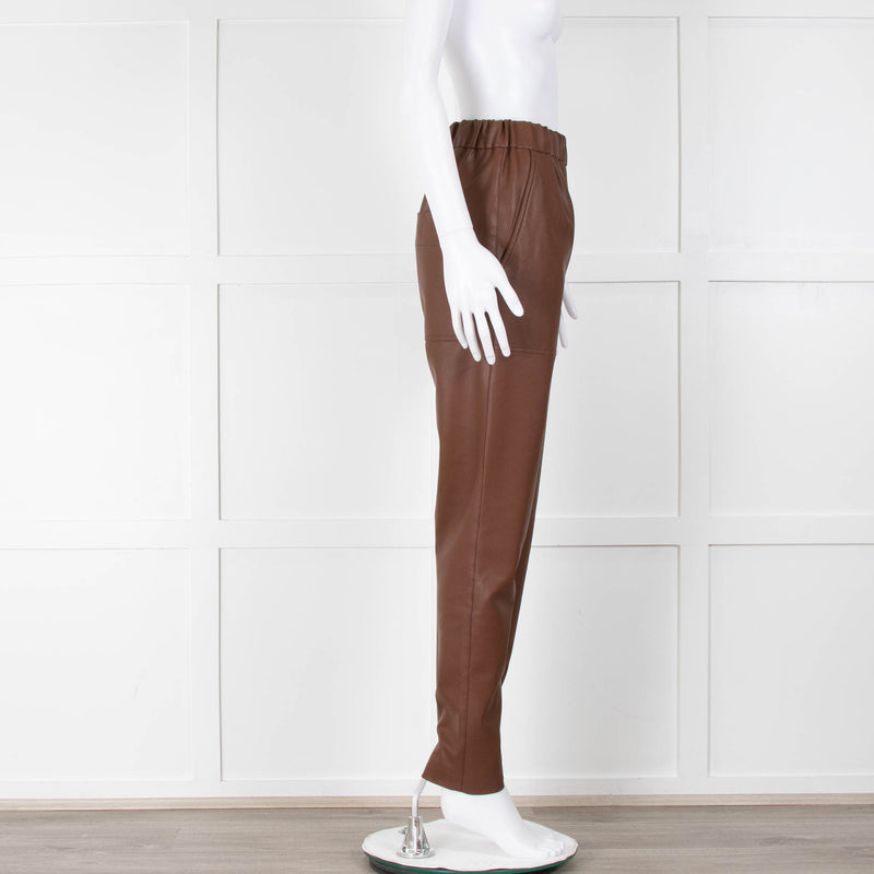 Tibi Tan Faux Leather Elasticated Waist Trousers
