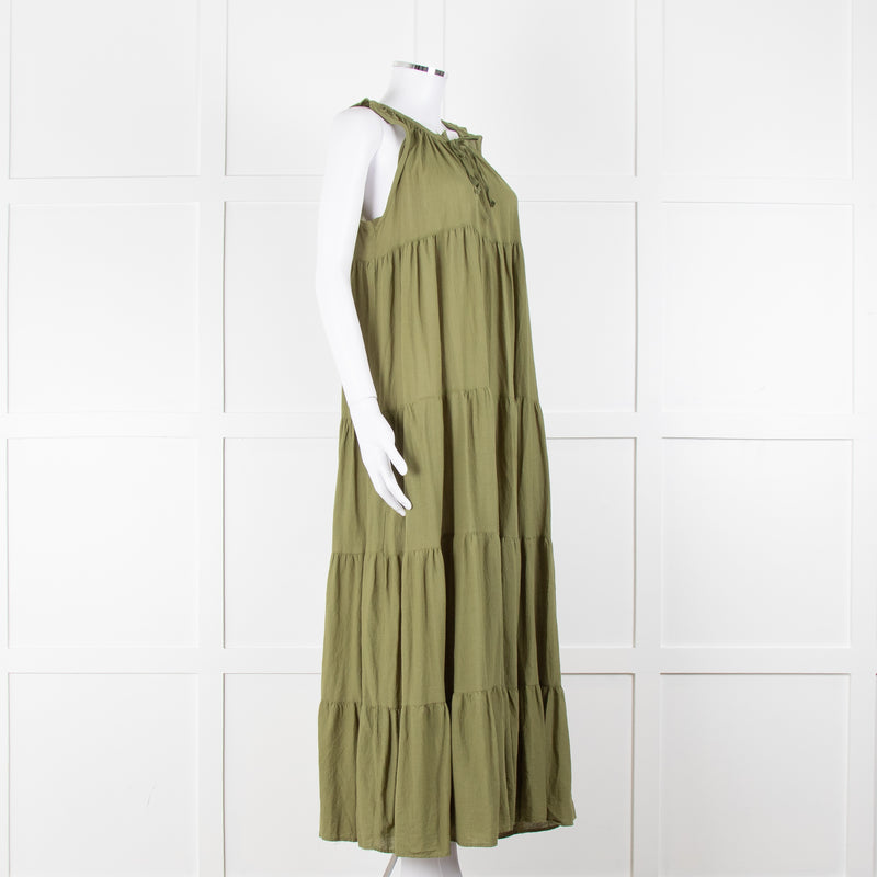 9seed Resort Green Cotton Tiered Maxi Dress