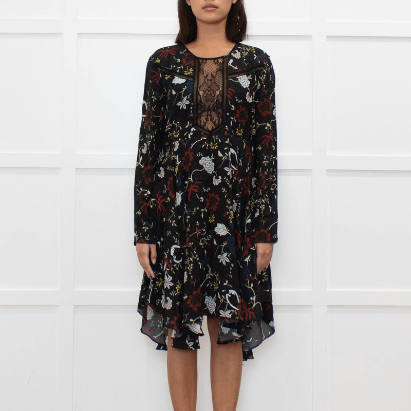A.L.C Black Floral Long Sleeve Lace Detail Dress