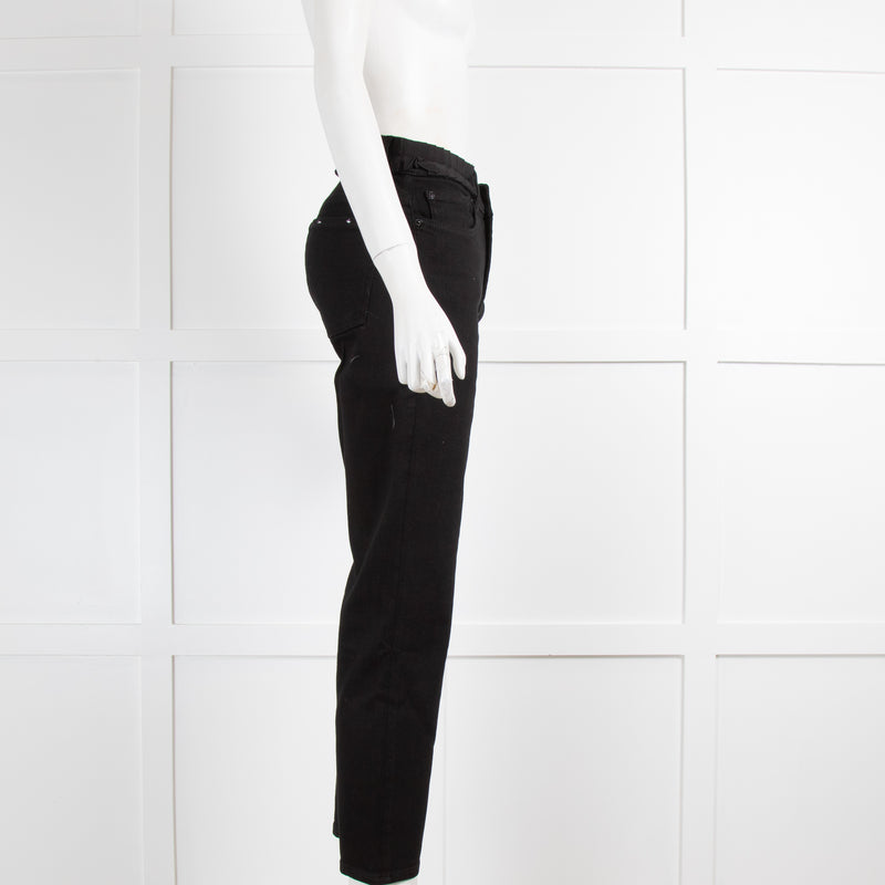 7 For All Mankind Black Grosgrain Frill Waist Jeans