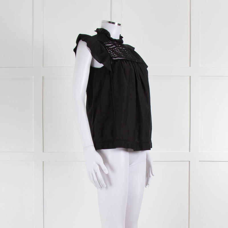 7 For All Mankind Black Cotton Silk Blend Lace Detail Top