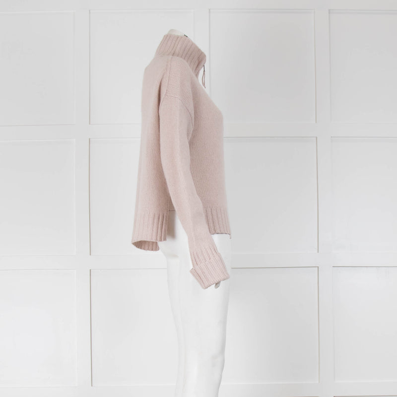 360 Cashmere Pink Jumper With Black Side Stripes & Tie Neck