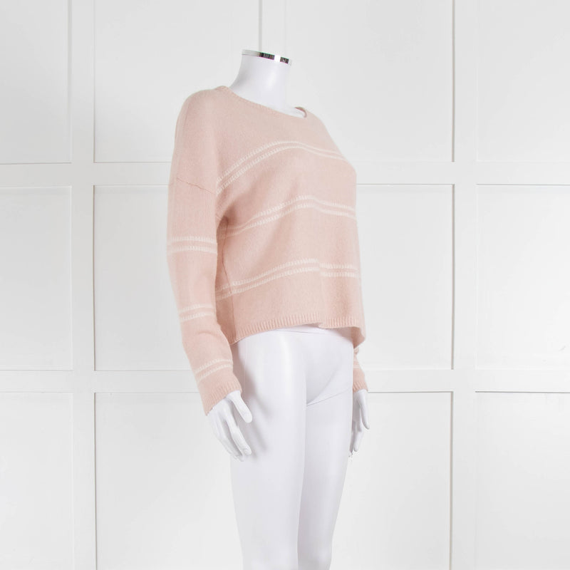 360 Cashmere Pink Boat Neck Cashmere Jumper With White Stripe