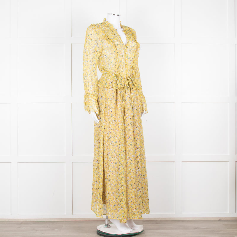 Zadig & Voltaire Yellow Blue Floral Frill Trim Maxi Dress