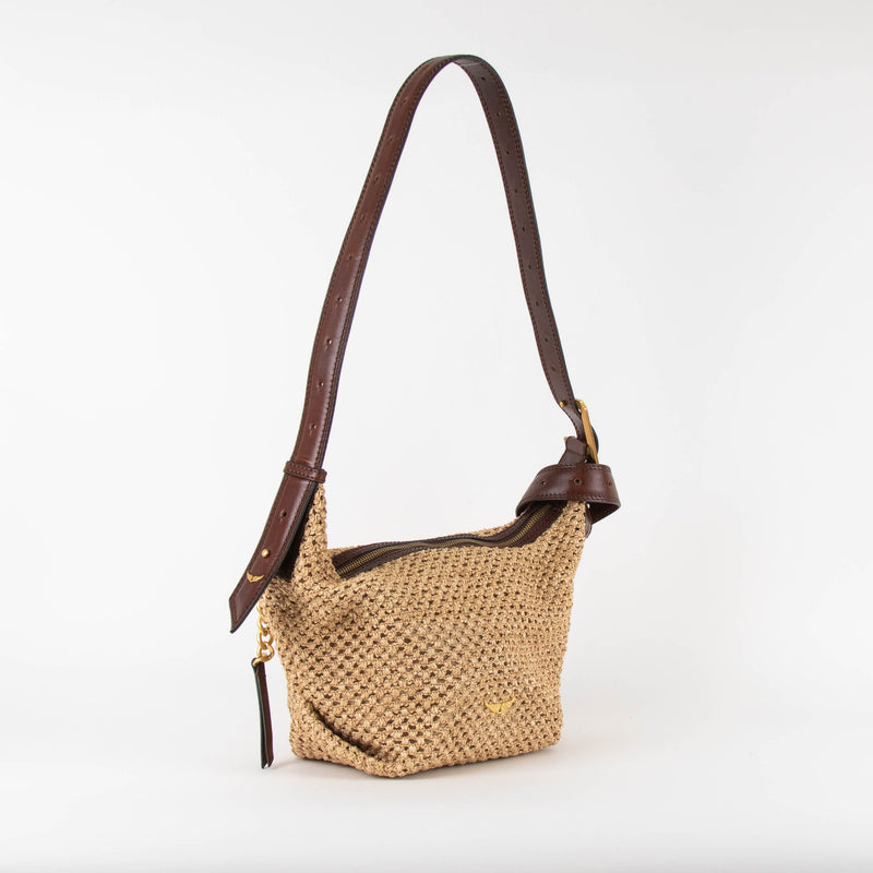 Zadig & Voltaire Raffia Cecilia Bag With Brown Leather Long Strap