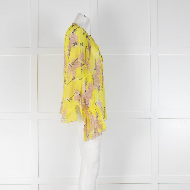 Zadig & Voltaire Yellow Floral Patterned Sheer Blouse