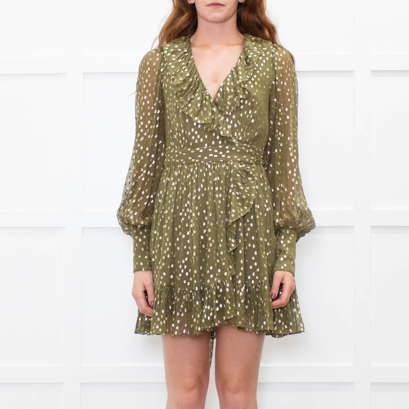 Zimmermann Green Metallic Silk Blend Mini Wrap Dress