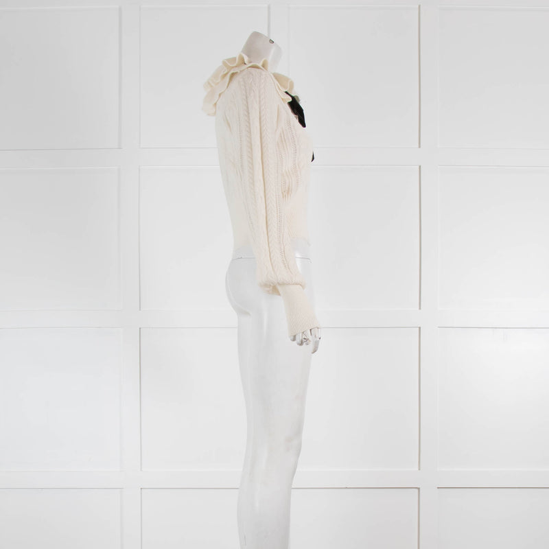 Zimmermann Tiered Frill Wool Jumper With Black Velvet Neck Tie