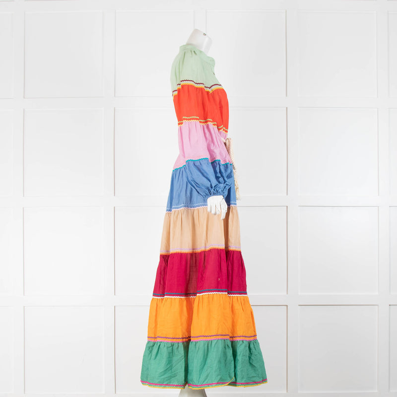 Zimmermann Silk Ruffle Multicoloured Patchwork Print Dress