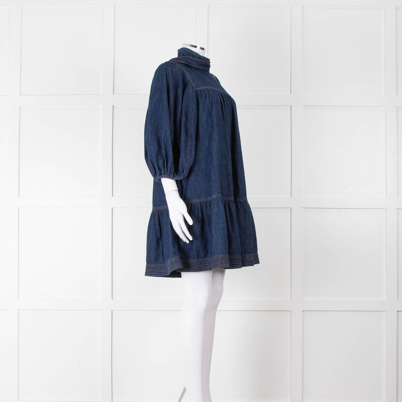 Zimmermann Multi Tiered Puff Sleeve Button Up Rope Belted Dress