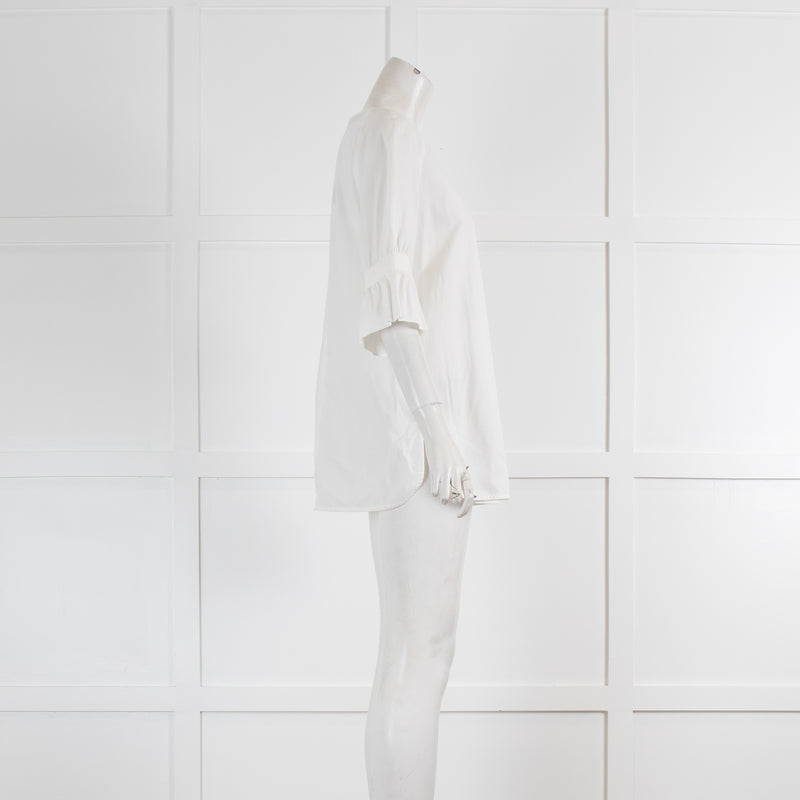White + Warren Pastel Blue Cashmere Button V Neck Jumper