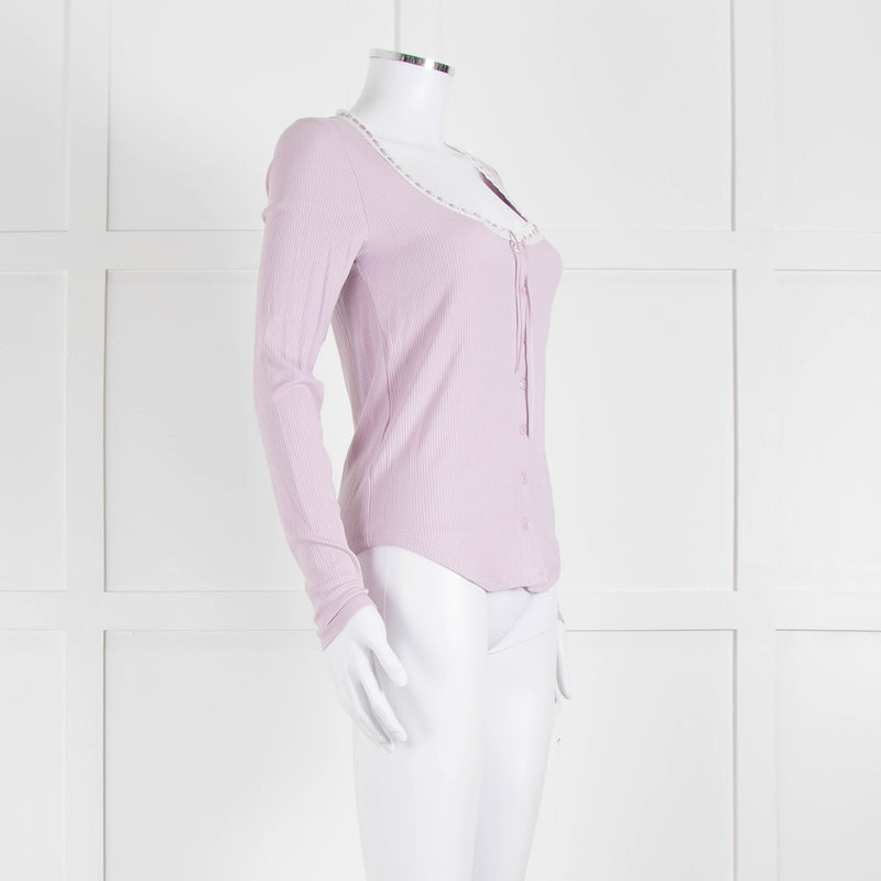 Wilfred Lilac Button Top With Ribbon Tie Neck