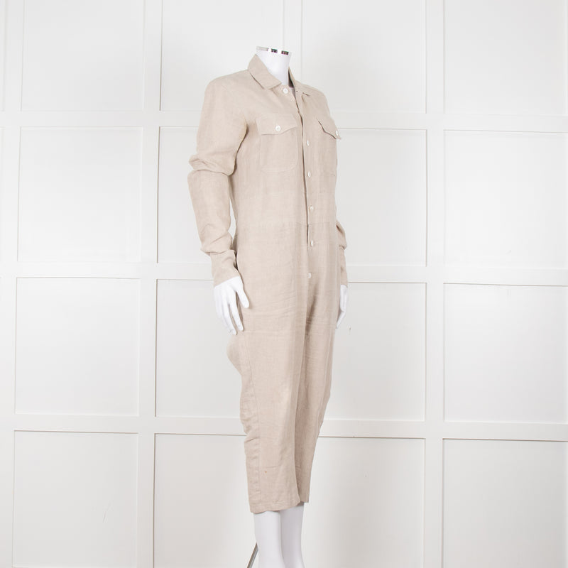 White Story Beige Linen Button Up Jumpsuit