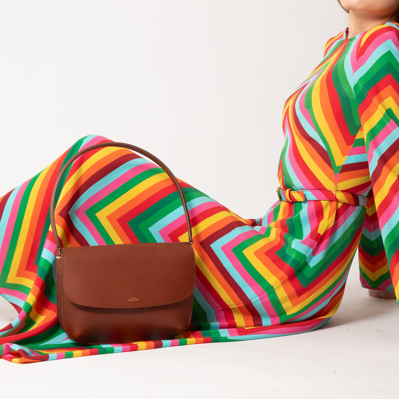 A.P.C. Sarah Leather Flap Shoulder Bag In Brown